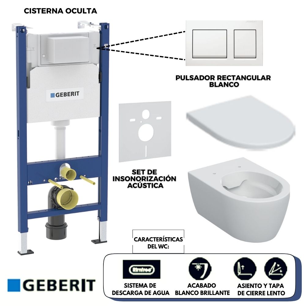 Set de Inodoro Geberit iCon con Asiento y Tapa, Cisterna Oculta y Pulsador (acabado Blanco Brillante) – Línea Alpha
