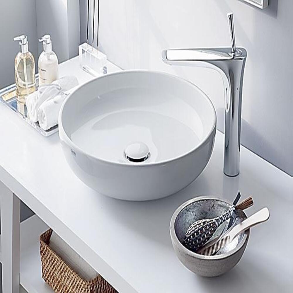 Lavabo blanco Shui, instalación sobre cubierta, sin rebosadero: